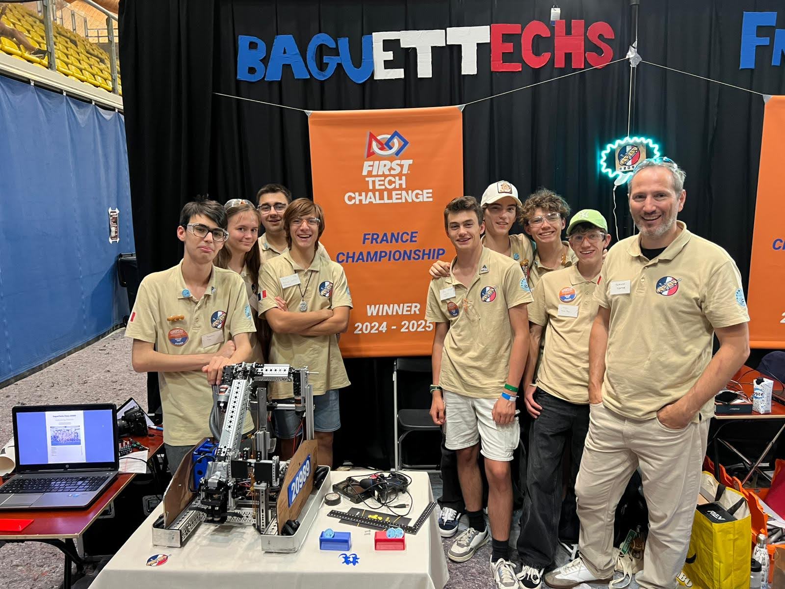 Nous sommes les BaguetTechs, équipe de FTC depuis 2019. Originaires de Valbonne, sur la Côte d’Azur, et hébergés par le Centre International de Valbonne (CIV), notre localisation nous permet de bénéficier d’un cadre exceptionnel, tant sur le plan géographique que technologique. En effet, la proximité de Sophia Antipolis, premier parc technologique d’Europe, nous permet de bénéficier de l’aide de mentors venant de grands groupes de la Tech, tels que ARM ou SAP. Notre école internationale accueille des élèves d’origines diverses ce qui nous permet également d’avoir une diversité culturelle très riche. Enfin, nous avons la chance de pouvoir partager nos locaux avec deux autres équipes de FTC : les Frenchineers (#20990) et les FRITES (#20991), mais aussi avec une équipe de FRC : les Geekos (#9220). Ainsi, nous pouvons brainstormer ensemble, discuter de solutions, apprendre mutuellement de nos erreurs et surtout nous entraider. Car la robotique ce n’est pas seulement un défi mécanique ou du développement, c’est aussi un aspect humain très important.